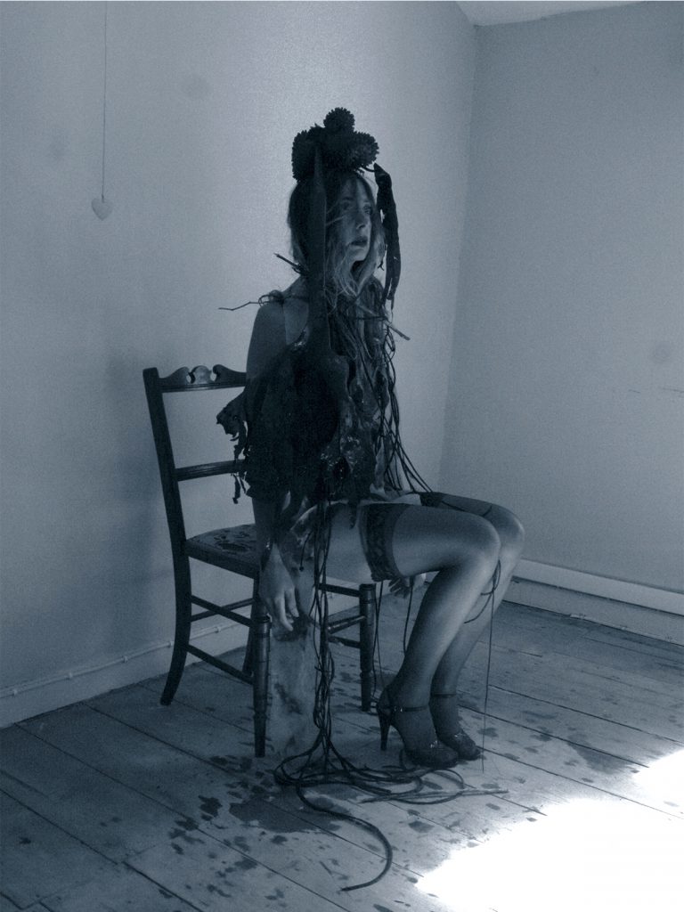 She first appeared on the music scene as the lead singer of Daisy Chainsaw, an English alt rock band that toured with Mudhoney and Hole in the early 90’s. Even then, her onstage persona was, shall we say, unhinged, and when she quit the band in 93 and disappeared from the public eye for six years, many suspected she’d succumbed to mental illness. But in 1999, she re-joined forces with Crispin Gray, the guitarist from Daisy Chainsaw, to form QueenAdreena.
